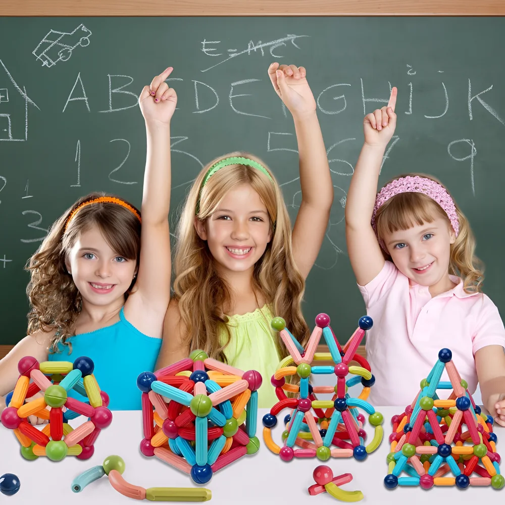 Magnetic Building Blocks STEM Toy – Educational Magnet Sticks & Balls Construction Set for Kids